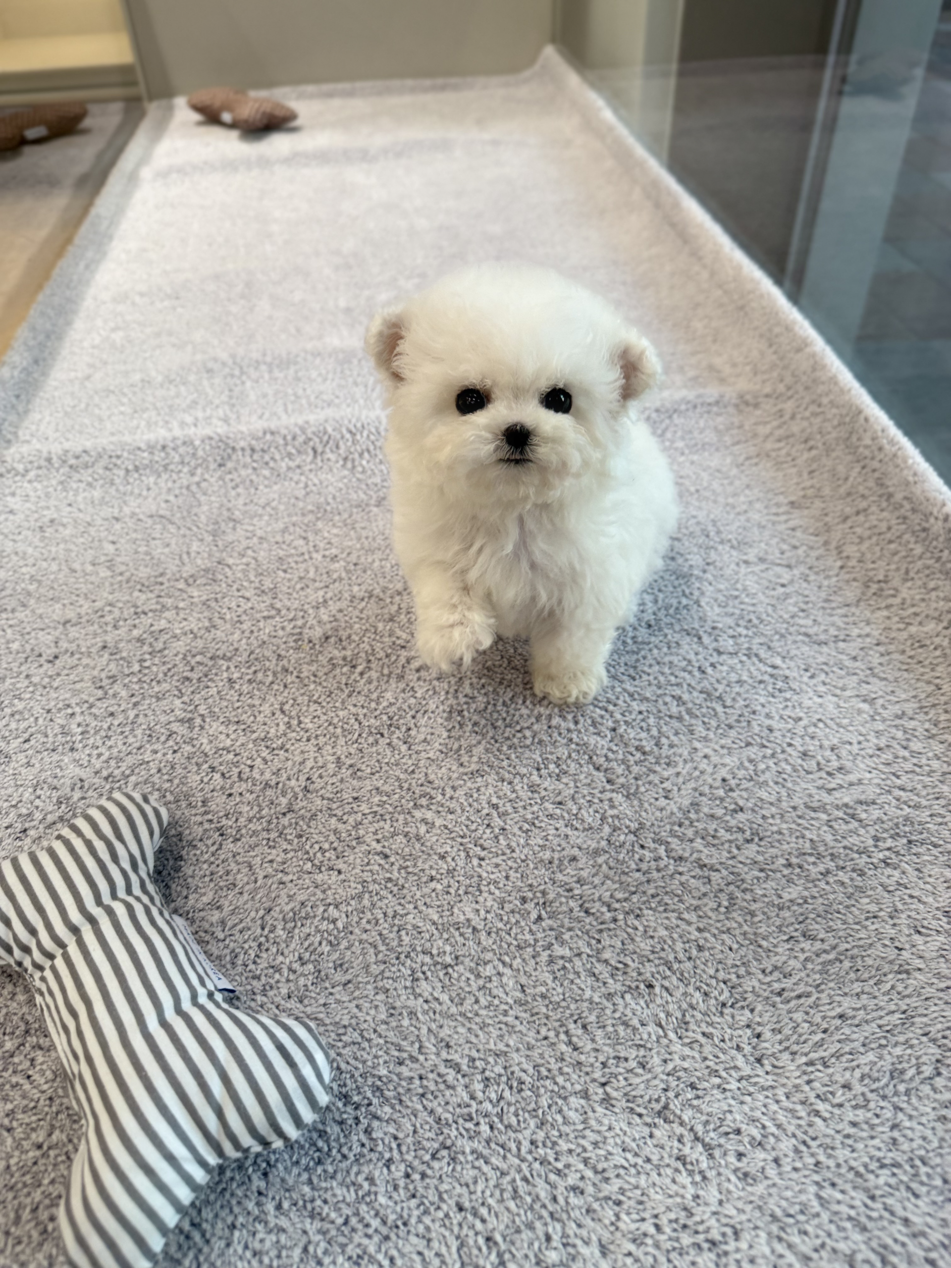 보송보송한 털과 반짝이는 눈망울이 매력적인 비숑 프리제 강아지가 새로운 가족을 기다리고 있습니다.